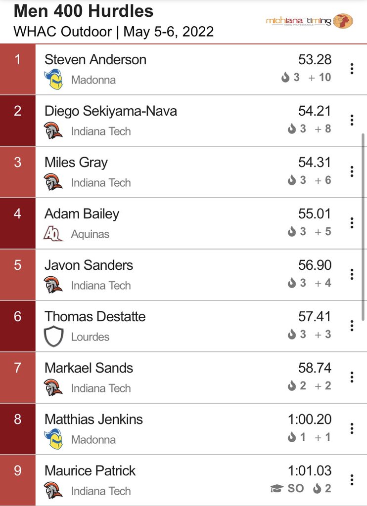 Tfrrs Indiana Tech Men S Track And Field Results Statistics