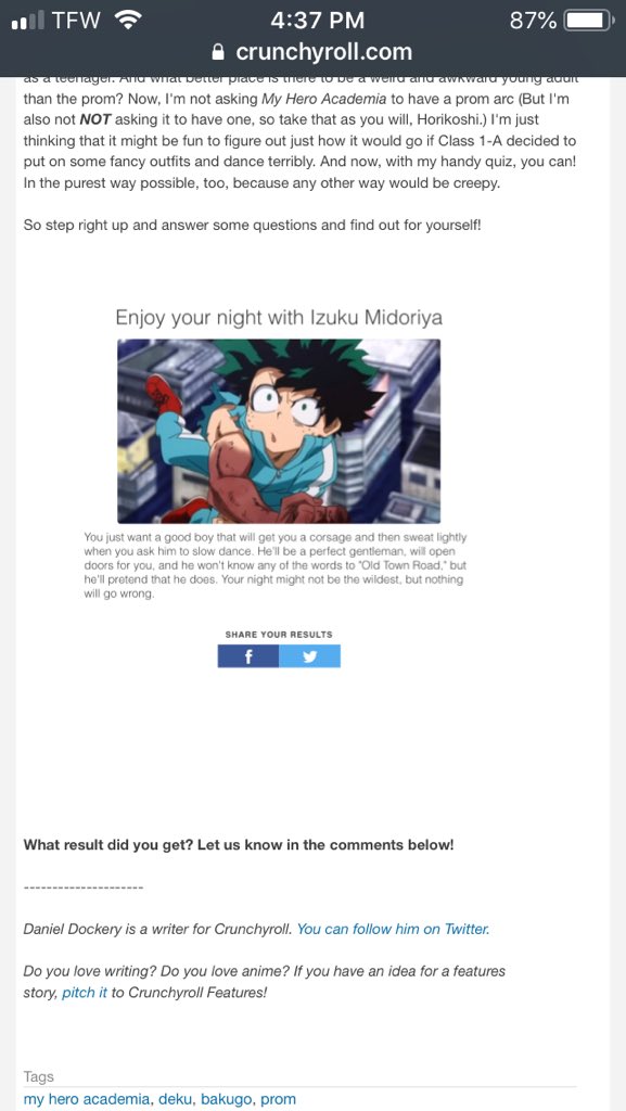 Crunchyroll V Twitter Quiz Which My Hero Academia Character Are You Going To Prom With More Https T Co Xzuldvgssq Https T Co Dfayq0d5p0 Twitter